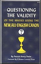 He released that very year his work Questioning the Validity of the Masses using the New, All-English Canon by Athanasius Press out of Reno, Nevada. Before Father James F. Wathen issued his irrefutable book The Great Sacrilege, Patrick's was one of the first voices to shout from the rooftops. Like so many of the early pioneers of Traditional Catholicism, Patrick knew he could not just sit back and wait, but resist from the beginning for the longer one waited, the more the enemy could dig in and become entrenched. In retrospect we can see this and it should be a wake-up call to those calling for a "cease-fire" with the election of Benedict XVI. They say, "give it time and things may change." Meanwhile the devil in the details anesthetizes the lukewarm, conquering more souls because so many of the faithful are lulled into